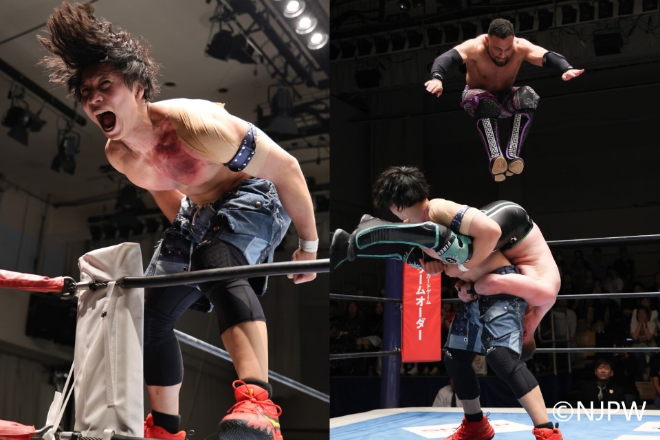 TJPがギリギリでカットに飛び込むと、復活したアキラはフットスタンプ、変型ジャーマンスープレックスで再び攻勢。そして、CATCH 2/2は必殺の2/2(サンドイッチニー)へ。だが、避けて同士討ちを誘ったYOHは、アキラをリバースフランケンで突き刺し、返す刀でTJPにトラースキックをズバリ。なりふり構わずアキラにショートレンジのラリアットを振り抜いた。そして、ストロングゼロ(デュードバスター&ダイビングフットスタンプ)がさく裂。熱戦に終止符を打った。