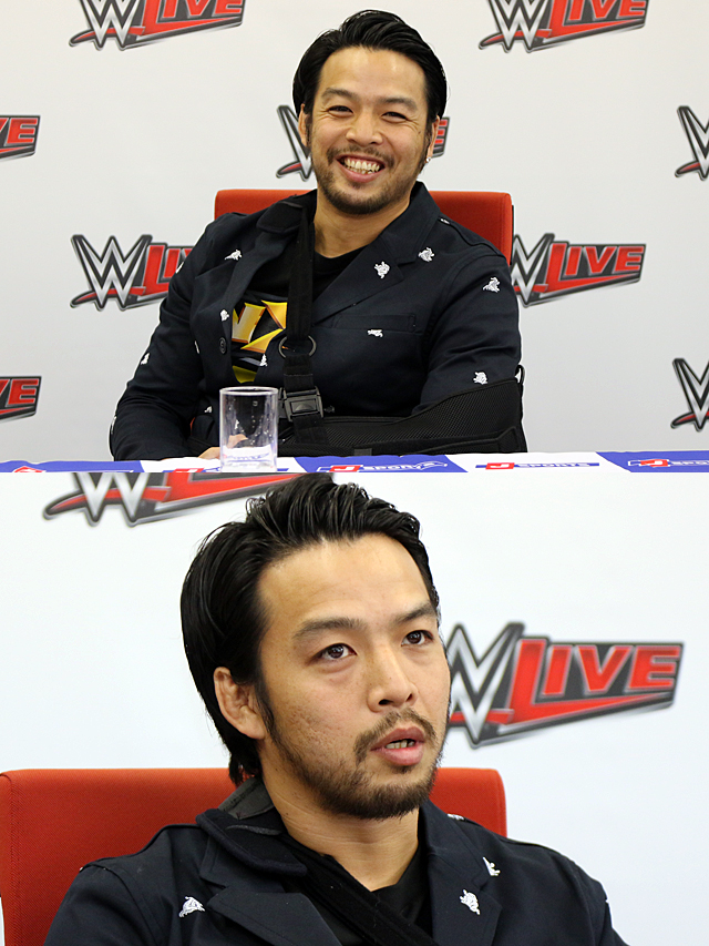 29日に行われたWWE日本公演に向けたイタミ・ヒデオの会見の模様は以下の通り。 【会見の模様】 ――WWE入りしてから今までの率直な感想は? ▼ヒデオ「この1年、色んなことがあって、自分の中での浮き沈みも激しかった。良い時もあれば悪い時もあって。色んなものを模索し続けてきた1年だったと思います。今こうして怪我をしてしまったというのもあって、振り返れば結果として決して良かったとは言えない1年だったと思います」 ――レッスルマニア出場を改めて振り返って? ▼ヒデオ「あれだけの規模の観衆の前でやるってことが初めての経験でしたし、いつかあのステージに立ちたいと思ってアメリカに行った中で、今年のレッスルマニアに関われたことは大きな出来事でした。そういう部分でも、『これからさらに…』っていうところでしたので、どうしても怪我が悔やまれる部分でもあるんですが…。でもやっぱりあの時間は特別なものでした」 ――NXTデビューにあたってウィリアム・リーガルらからアドバイスは受けた? ▼ヒデオ「最初『自分のスタイルは何なのか』という部分を模索してたところはありました。自分を見失ってた時期があったんですが、そんな中でリーガルから『お前はお前でいいんだ』と気遣ってもらえましたし、HHHから『お前はお前だ。もしお前が遠くに行ってしまったら、俺が引き戻してやるから、お前はお前らしくやればいい』と言ってもらえた時には、凄く励みにもなりました」 ――イタミ・ヒデオというリングネームについて? ▼ヒデオ「自分の中では“ヒデオ"って呼ばれることに今では違和感はないですし、アメリカのオーディエンスも対応力の早さというか。名前が変わってからすぐに『ヒデオ、ヒデオ』と言ってくれましたし。だから自分の中ではしっくりきてます」 ――怪我の具合は? ▼ヒデオ「手術をしたので、動かすとまだ痛い段階。稼働域が全然ないので、そこを動かせるように少しずつリハビリしていってます」 ――具体的な症状と全治は? ▼ヒデオ「脱きゅうしてしまって、その際に中の骨が欠けたりしていて手術しました。完治はハッキリまだ分からないですけど、なるべく早く戻りたいとは思ってます。今は治すことが何よりの手短な目標です」 ――NXTであらゆる育成プログラムをこなしてきたと思うが、パフォーマンスセンターに通うなどの生活も慣れた? ▼ヒデオ「そうですね。NXTは練習時間だったりが凄く管理されてるし、パフォーマンスセンターは凄い施設。最高の環境。ただ、“プロモ"の時間とかは日本では無いものだったので慣れるまでに時間はかかりました」 ――日米での一番の違いは? ▼ヒデオ「一言で言うのは難しいんですけど、一番感じたのは“テレビ番組である"ということ。世界じゅうに配信していますから」 ――ベイラーやオーエンズといった切磋琢磨できる仲間がいるが? ▼ヒデオ「ほぼ同時期にパフォーマンスセンターに入って、その中で僕が最初にデビューして、その後にフィン、オーエンズ。そしてあっという間に先を越された感覚はもちろんあるんで。ただ、自分もレッスルマニアに出て『さあ、ここから逆転したい』と思った矢先だったので、この怪我は悔やまれますけど、復帰したら必ず逆転したいと思うし、チャンピオンシップに絡んでいってNXTのチャンピオンになりたい。それが課題ですね」 ――オーエンズがPPVに出たりとNXT自体も注目されているが、NXTを大きくしていくことにどう貢献していきたい? ▼ヒデオ「NXTは今、フロリダだけじゃなくて、フロリダ以外の州にも出て行って、凄い盛り上がりなんですよね。NXTを待ってくれている人たちが多くなっているのを凄く感じるし、RAWの収録中にもNXTのチャント(※観客のコール)があったりと注目している人たちも多くなってきてる。そうして新しい歴史を作ってる今、少しでも何かを担えるってことにはやりがいを感じてる。これからさらに大きくなってくと思うし、その中でも自分の居場所をしっかり見つけて、中心選手にならないといけないし、なっていきたいと思います」 ※後編に続きます