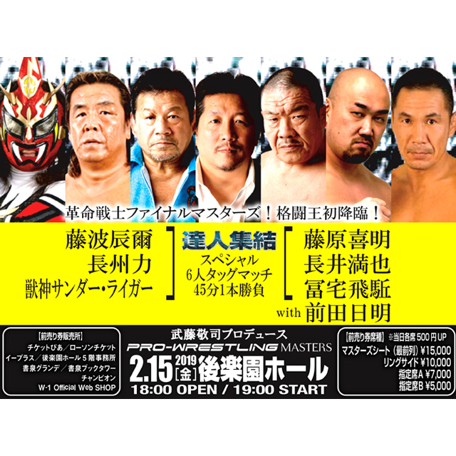 【MASTERS】2/15(金)東京・後楽園ホール『PRO-WRESTLING MASTERS』18:00開場、19:00開始