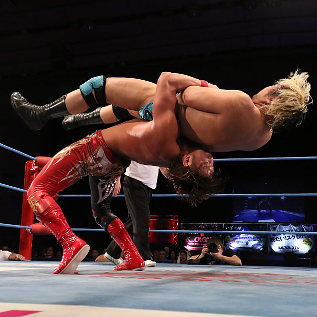 場内が沸き返る中、勝負あったかに思われたが、宮原は驚異の粘りを発揮して返してみせた。ならばと諏訪魔はラリアットで吹き飛ばし、バックドロップで追い討ちをかけたが、3度目のトライとなったラストライドは宮原が阻止。二段式ジャーマン、シャットダウンで一気にたたみかける。諏訪魔も意地で肩を上げてみせたが、宮原は再びシャットダウンの構えに。宮原政権に抗うようにこらえ続ける諏訪魔を引っこ抜いてようやく3カウントを奪った。
