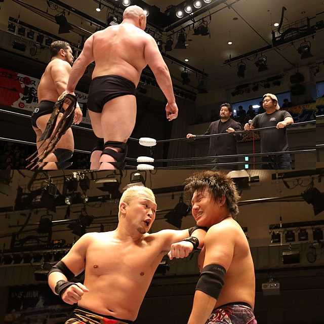 諏訪魔&石川の暴走大巨人が大日本2・28後楽園大会に来場し、世界タッグ王者・関本&岡林にベルトをかけての再戦を要求。王者組も受けて立ち、大日本1・13後楽園大会以来、2ヵ月ぶりとなる再戦が決まった。暴走大巨人にとっては雪辱戦で、関本&岡林は2・24横浜文体でジェイク・リー&崔領二を退けて以来2度目の防衛戦となる、