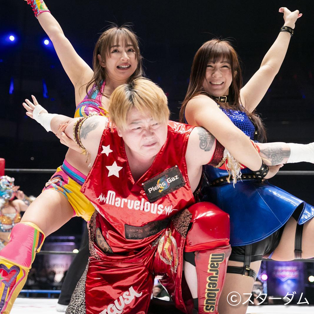 愛川ゆず季がスターダム10周年記念大会で限定復帰。必殺技・ゆずぽんキックを連発し、美闘陽子との“BY砲"も復活した。