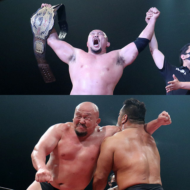 リング上でぶち上げた日本全国での防衛戦についても岡林は王者の貫禄たっぷりに「もちろんウチのヘビー級どんと来いですよ。他団体もどんと来い。誰でも受けて立つ」と豪語。「俺に勝てる自信あるヤツは誰でも来いよ」と広く挑戦者を募った岡林は「次もどんどん防衛していきますので、見ていてください。力こそパワーや! ピッサリ!」とこれからも続く防衛ロードへ向けて宣言してみせた。