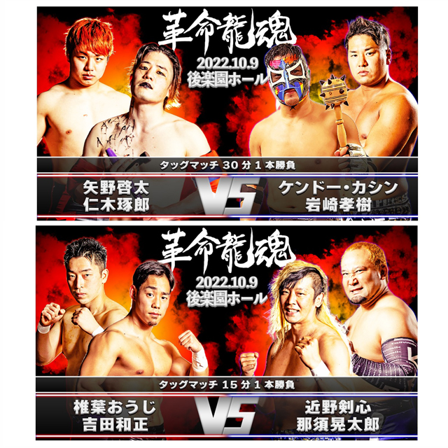 カシンは岩崎孝樹と組んで矢野啓太&仁木琢郎と対戦。「椎葉おうじ&吉田和正vs近野剣心&那須晃太郎」も決まった。これで天龍プロジェクト再開後、初の聖地・後楽園大会は全7試合となり、試合順も決定した。詳細は以下の通り。