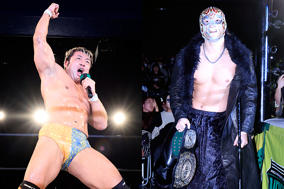 なお、OZAWAはマスクを“強奪"したまま。バックステージでは「ガレノがキャバクラに言ったりタバコ吸ったりという情報を得ています。そんな遊んでばっかりいるヤツが挑戦していいベルトではありません! GHCの権威を落とさないでくれよ、よろしくお願いします! 一生懸命僕も防衛してんすよ。そんなヤツが挑戦できるベルトなんだなって世間の皆様に思われてしまうのが悔しくてたまらないんです。心入れ替えてください!」とベルトを頭に乗せながら、白々しさ全開で挑発を重ねていた…。