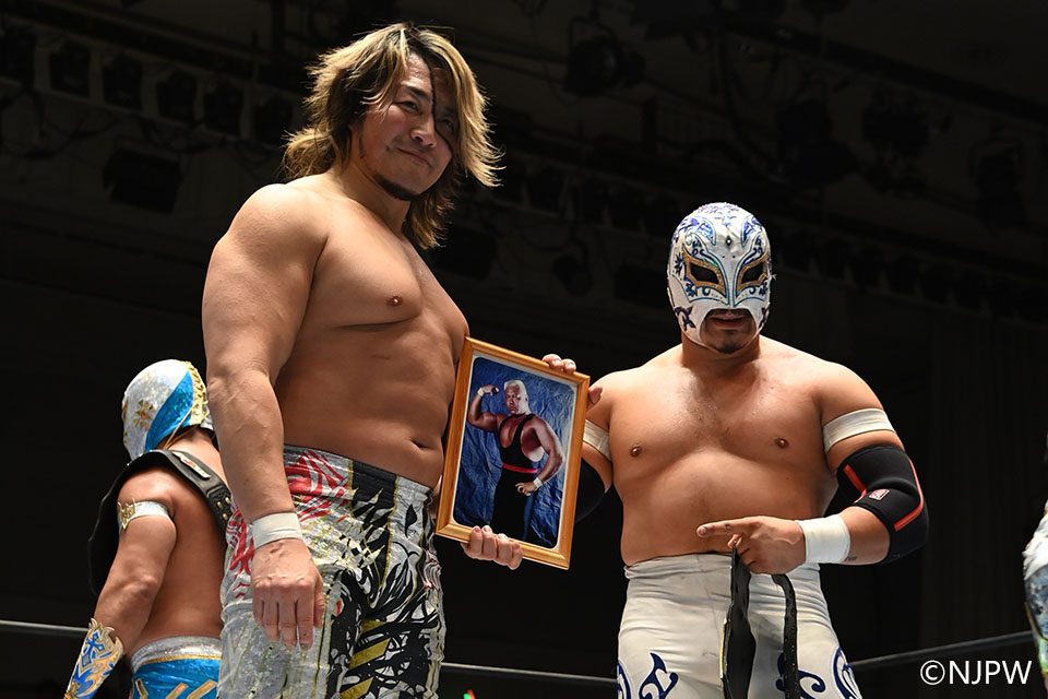 ▼棚橋「(※他のメンバーにスペイン語で)写真撮ろうぜ。クロネコさんに感謝します。若いころ、いつも鍛えてもらったよ。ムーチャス・グラシアス」