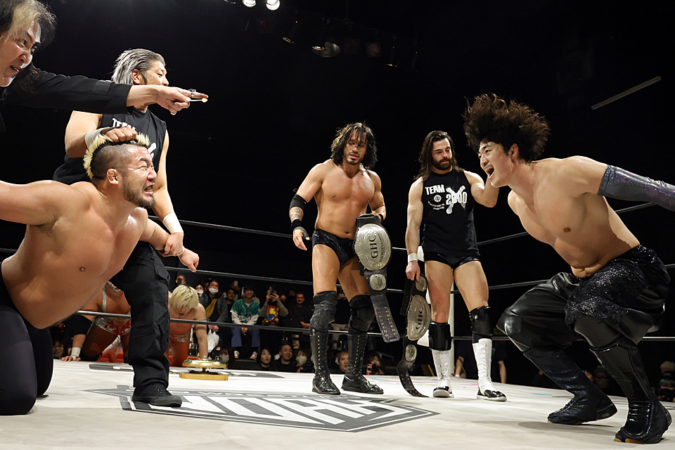 一方で今もなおGHCタッグ王者を名乗り続けるモリス&ダガは、試合が終わっても清宮&ガレノと果てなき大乱闘を展開。オモスからダガへの譲渡は認められず、タッグ王座は現在空位となっているが、モリスとダガはこの日もベルトを返さずに王者然と振る舞っていた。