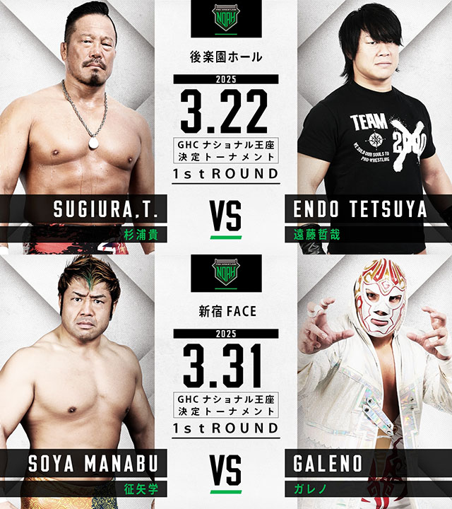 【NOAH】GHCナショナル王者決定トーナメント開催、「KENTAvs憂流迦」「菊池vsタダスケ」も決定 4大会カード発表 2025/3/9