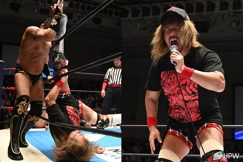 その後、内藤はヒロムとのテンデデロをTAKAに叩き込み、ネックロックで絞め上げる。フロントハイキックで反撃されると、タイチに河津落としで攻め込まれたが、BUSHIが場外から足をすくって追撃を許さず。YOSHI-HASHIに追尾式ドロップキックを見舞ったBUSHIだったが、YOSHI-HASHIとTAKAのダブルトラースキックを食らうと、バタフライロックに捕まって敗退に終わった。