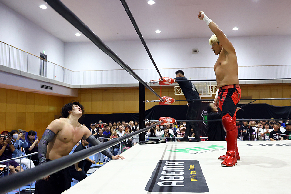 前夜(5日)新宿大会での前哨戦第1ラウンドでは屈辱の直接ピンフォール負けを喫していた拳王だが、今宵は憂流迦が勝利を手にし、間接的ながら“OZAWAママ"の眼前で反撃星。