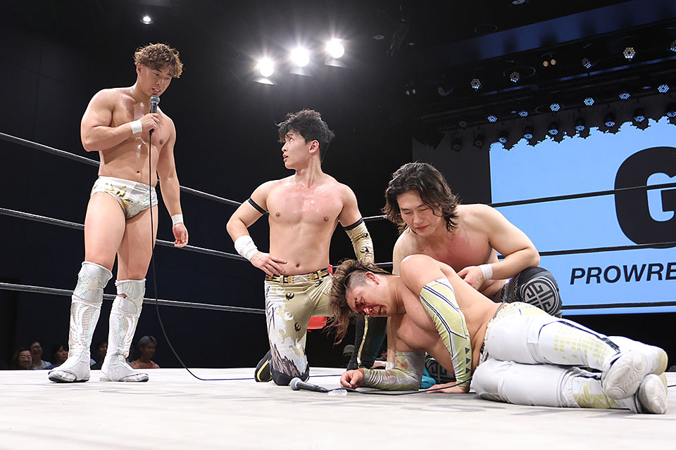 観客がざわつく中、渡辺は地声で「終わったことはしょうがないから。切り替えが大事」とお構いなしに強調した。そしてジュンジェが「G-RIZE、このユニット解散したくない。俺たちブラザー、フォーエバー。G-RIZEは私の家族です」と言い切ると、リーは「山村さん、壮馬、そしてマイブラザー・ジュンジェ、ありがとう」と感謝。「僕は日本に来てブラザーと集まって初ユニットG-RIZE。僕のプロレス人生、いや僕の人生に何より意味のあることだった。ありがとう。僕たち今までG-RIZEを応援してくれた皆さんの前に恥ずかしくないように強くならなければならないと思った。僕、もっと強くなって、もっといい形で戻るのがいいなと思う。皆さん、ありがとうございました」と別れを告げるような言葉を口にした。