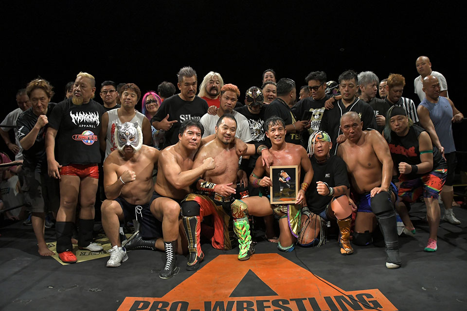 天国の橋本さんに届けとばかりに、第0試合から熱闘が展開された。メインイベント(第7試合)では、A-TEAMの下田大作&長谷川一孝がFREEDOMSの佐々木貴&GENTAROと激突。一進一退の激しい攻防となり、最後は貴がDガイストで長谷川を仕留めた。