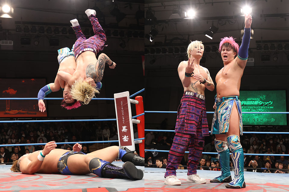 世界最強タッグ決定リーグ戦開幕戦のメインで、亮生が兄・優馬超え。アツハヤが好発進を遂げると、ジュニアヘビー級のプライドをあらわにした亮生は「アツハヤがかき乱して、優勝しちゃいます」と予告した。
