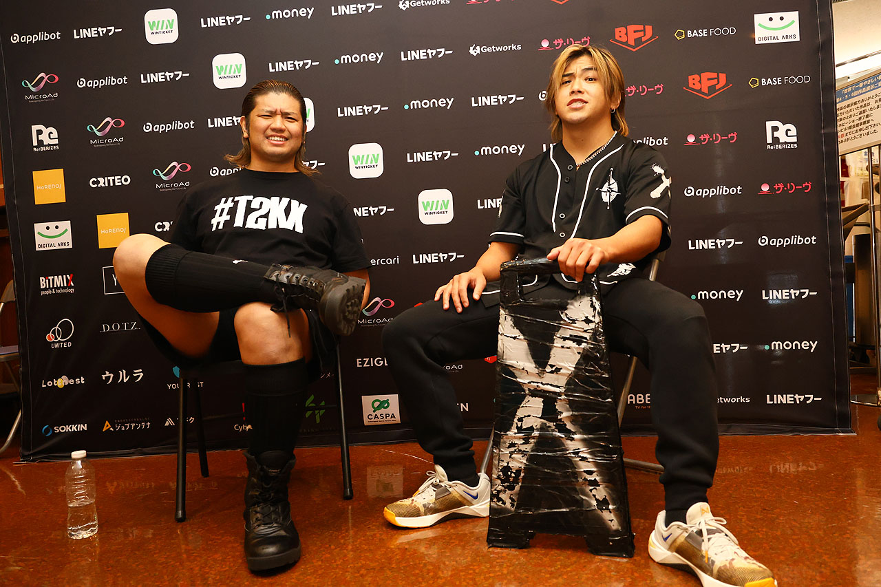『NOAH Jr. TAG LEAGUE 2026』に出場するタダスケ&政岡純のTEAM 2000Xコンビ。 タダスケが京都、政岡が大阪出身の関西圏コンビ。政岡が大阪プロレスのプロレス教室に通っていた際、講師を務めていたのがタダスケだった。昨年11月に政岡がT2000X入りしてタッグを組んだが、20年以上の付き合いがある。 昨年12月にはダガ&小田嶋大樹組の持つGHCジュニアタッグ王座に挑戦したものの敗退。捲土重来を期すリーグ戦に向けて、その“何でもアリ"な胸の内を聞いた――。 【タダスケ&政岡 インタビュー】 ――ジュニアタッグリーグ戦出場が決まりましたが、率直な思いというのは? ▼タダスケ「優勝以外なんかある? ないやろ? じゃあ、お疲れしったー(※帰ろうとする)」 ――すみません、お待ちください…。政岡さんは? ▼政岡「出場決まってる時点で優勝以外ないっしょ。どんな手を使ってでも優勝。以上。はい、お疲れっしたー(※と二人で帰ろうとする)」 ――お待ちください、もう少しだけお付き合いいただけると… ▼タダスケ「なんや、めんどくさいのー。じゃあ、はよ聞けや。で?」 ――二人で組むようになって3ヶ月が経ちましたが、手応えのほどは? ▼タダスケ「ま、MJと組むのはラクやね。ラク。なんでもくみ取ってやってくれるし、オオワダサンみたいなもんやね。ほんま気ぃ利くし、めちゃラクやわ。タッグ組んだのは3ヶ月かもしれんけど、もう付き合いでいったら20年以上になるワケやから」 ▼政岡「うん、もう意思の疎通は何も言わんでも取れるよ」 ――今回のリーグ戦で気になるチームというのは? ▼タダスケ「ウルフとカイのチーム以外はザコ。なかでもあのUKのヤツら(トゥリュー&レイシー)は特にザコ。去年の決勝もそうやったけど、あいつらすぐ意識飛ばすやろ? 楽勝やね。また意識飛ばしたらゴメンな〜って感じやね」 ▼政岡「同じ。カイとウルフ以外はザコ」 ――そのウルフ&カイ組とのT2000X同門対決は2・14品川の昼の部で組まれています ▼タダスケ「そもそもウルフはジュニアヘビー級なん? 絶対ちゃうやろ? もう公開計量したろうかな? いくら同門対決いうても、やっぱそこはもう『いかにラクして決勝行くか』やからね。不戦勝狙ってくわ。てか、ほかの公式戦も同じやで? 『いかにラクして決勝行くか』や。全部15分1本勝負やし、すべて秒殺狙いでいかせてもらうわ。公式戦すべて5分以内で終わらせたる」 ――ではベイン&アレハンドロ組との公式戦も… ▼タダスケ「そんな、しょーーーもない兄と弟が組んだチーム。マスク剥いで終わりやな。…あ、それだとこっちが終わってまうか。ま、裏切られる人間たちっていうのは底が知れとる。薄っぺらい。5分以内!」 ――小峠&Hi69組とも当たりますが… ▼政岡「あいつらってまだ試合してたっけ? (※タダスケに)知ってます? そんぐらいの印象しかないよ」 ▼タダスケ「だって窓際じゃなくて、窓の外行ってもうたからね。そもそも(※難病から復帰した)Hi69は『出ても大丈夫なん? ええんやで休んでも』って感じ。病み上がりなので3分以内!」 ――AMAKUSA&ブラックめんそーれ組に関しては? ▼タダスケ「いや、なんでなん!? なんで出るん!? 勝つ気ないやん。ブラめんて…突然やる気出してたけど、だったら普段からやれや! まぁAMAKUSAは一応チャンピオンやから……4分以内!」 ▼政岡「AMAKUSAは俺に裏切られたのに、俺から目を逸らして逃げ回ってるのか知らんけど、全然こっち向かんから。ま、当たった時は必ずこっち向かせるよ」 ――ジュニアタッグ王者のダガ&小田嶋組とは2・21薩摩川内大会で当たります ▼タダスケ「チャンピオンが出るんやったら公式戦にベルト懸けろや。優勝してもう一回タイトルマッチやって…って、まわりくどいねん! それか優勝したチームにベルトを譲渡しろや。5分以内!」 ▼政岡「12月の名古屋で挑戦して負けたけど、あれは1000回あるうちの1回で負けただけやから。まあ次は普通にガッツリ勝つから」 ――では優勝決定戦で当たりたいチームというのは? ▼タダスケ「どこでもええに決まっとるやろ! ラクして優勝できたら相手なんて誰でもええねん! で、さっきも言ったけど、チャンピオンが出てるリーグ戦なんやから、優勝したらそのままベルトもよこせ! まわりくどいねん!」 ――…では優勝した暁には、どんなノアジュニアにしていこうと考えていますか? ▼政岡「なんか最近のノアジュニアは『未来が!』とか『ユニット愛が!』みたいな、爽やかな青春ごっこみたいな雰囲気ばっかりでヘドが出る。そこも含めてウチらが黒く塗りつぶしてくよ」 ▼タダスケ「あんな青春学園モノみたいな二人(ダガ&小田嶋)がジュニアタッグチャンピオンで、シングルを巻いてるのは、(昨年末のトーナメントで)俺に負けたAMAKUSA。そんなヤツらがチャンピオンになるより、俺らT2000Xがベルト巻いて、ヒドいノアジュニアにしたほうが、絶対おもろくなるやろ」 ――では最後に意気込みを… ▼タダスケ「(食い気味に)もうええか? さっきからお前く
