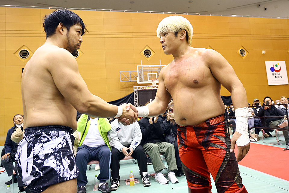 3・8横浜武道館大会でのGHCヘビー挑戦を控える拳王が“想い出の地"薩摩川内で、王者Yoshikiに反撃星。“想い人"KENTAとも握手を交わした。
