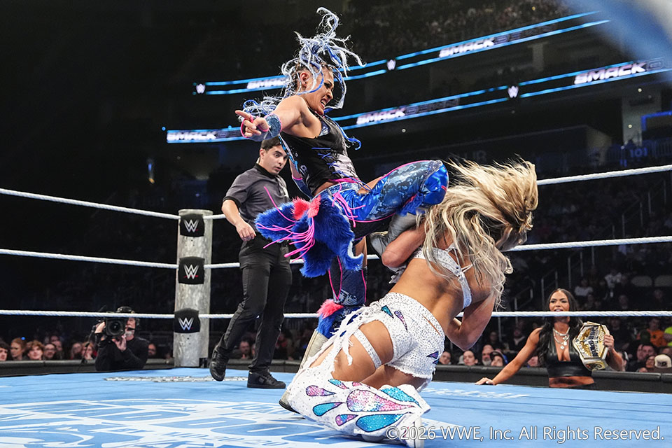 スマックダウンが現地時間27日、ペンシルベニア州ピッツバーグで行われ、女子US王者・ジュリアが元WWE女子王者ティファニー・ストラットンとの一騎打ちに快勝した。
